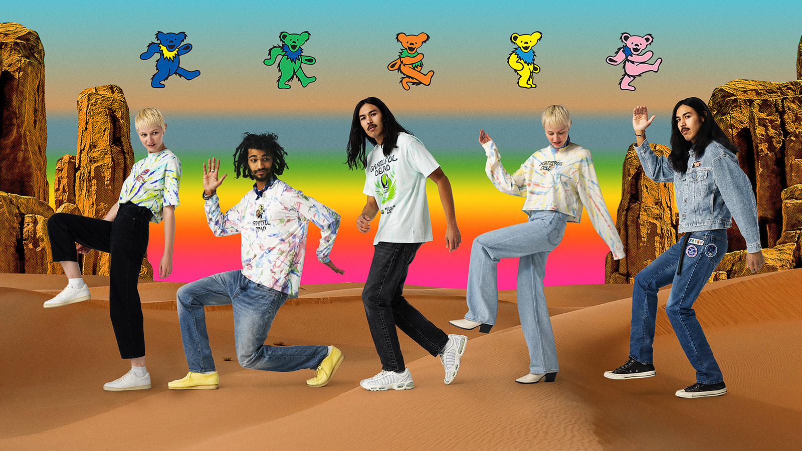 In a celebration of community, music, creativity and self expression, two west coast icons come together. For this collection, we are showcasing a new generation of Deadheads and denimheads: an eclectic group of young San Francisco musicians, artists and individuals who think for themselves and think of and act in support of others. Feel the love. For this iconic collaboration, we tapped digital artist Chrissie Abbott for her bold and unique use of color, collage, and psychedelics. Chrissie created a fantastical digital world by stitching together creative vignettes through lo-fi animation and trippy transitions that combine static studio imagery, organic geometric shapes, and stock environmental imagery. The result feeling like in a wild acid trip on a far away planet.